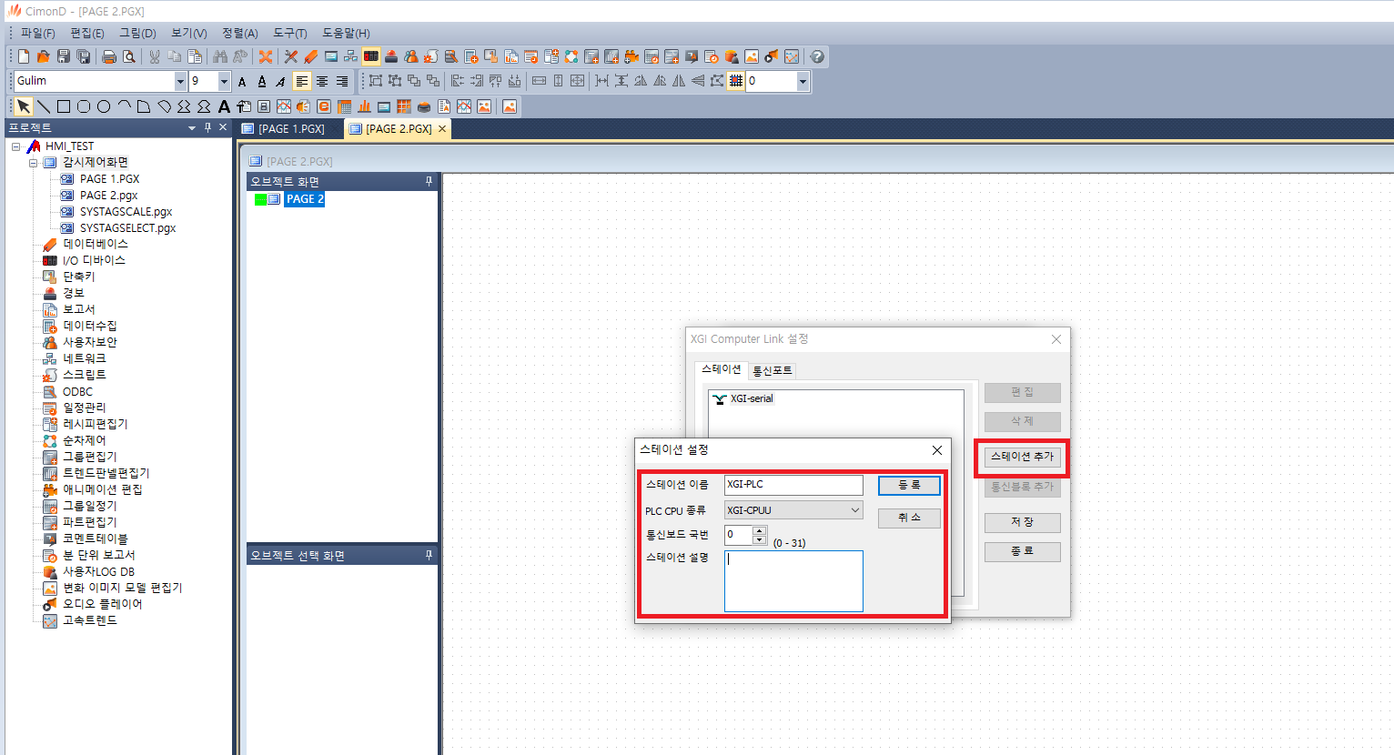 스테이션 이름 : XGI-PLC