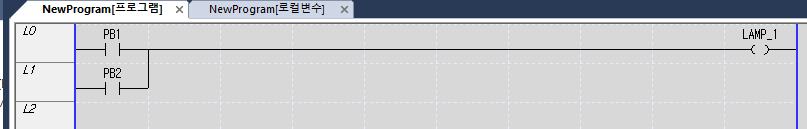 3)시작 버튼(PB_1),시작 버튼(PB_2)을 동시에 눌러도 LAMP_1은 점등됩니다.