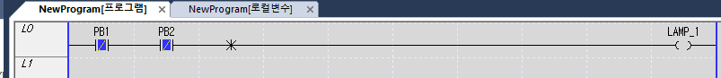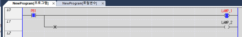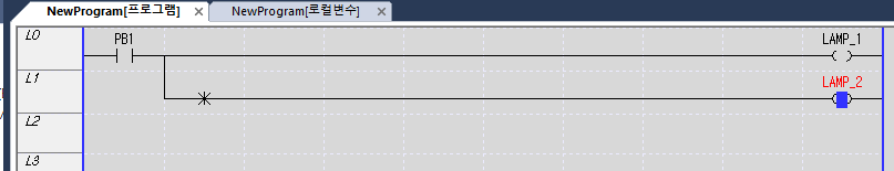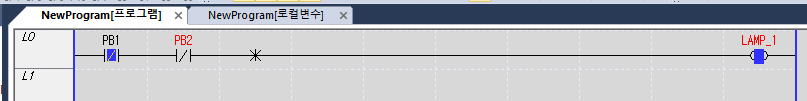 2) 시작버튼(PB_1)을 누르지 않으면(OFF) LAMP_1은 소등 LAMP_2는 점등이 됩니다.