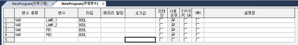 1) 시작 버튼(PB_1)을 누르면(ON) LAMP_1은 점등 LAMP_2는 소등이 됩니다.