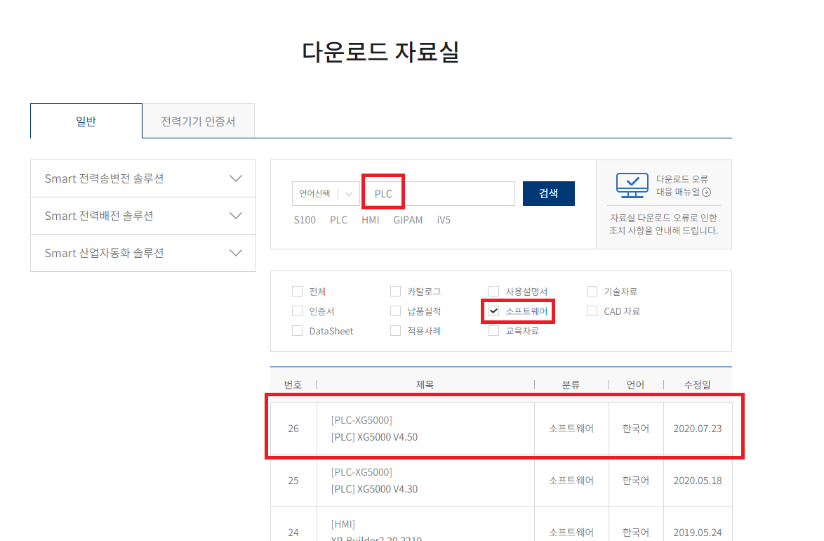 LS산전 다운로드 자료실 : https://www.lselectric.co.kr/ko/download/