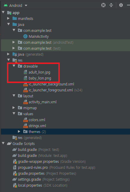 1. 2개의 이미지 파일을 준비해서 drawable에 추가 시켜줍니다!(드래그 앤 드랍으로 추가 가능)