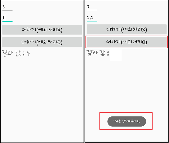 android:text="더하기(예외처리o)"